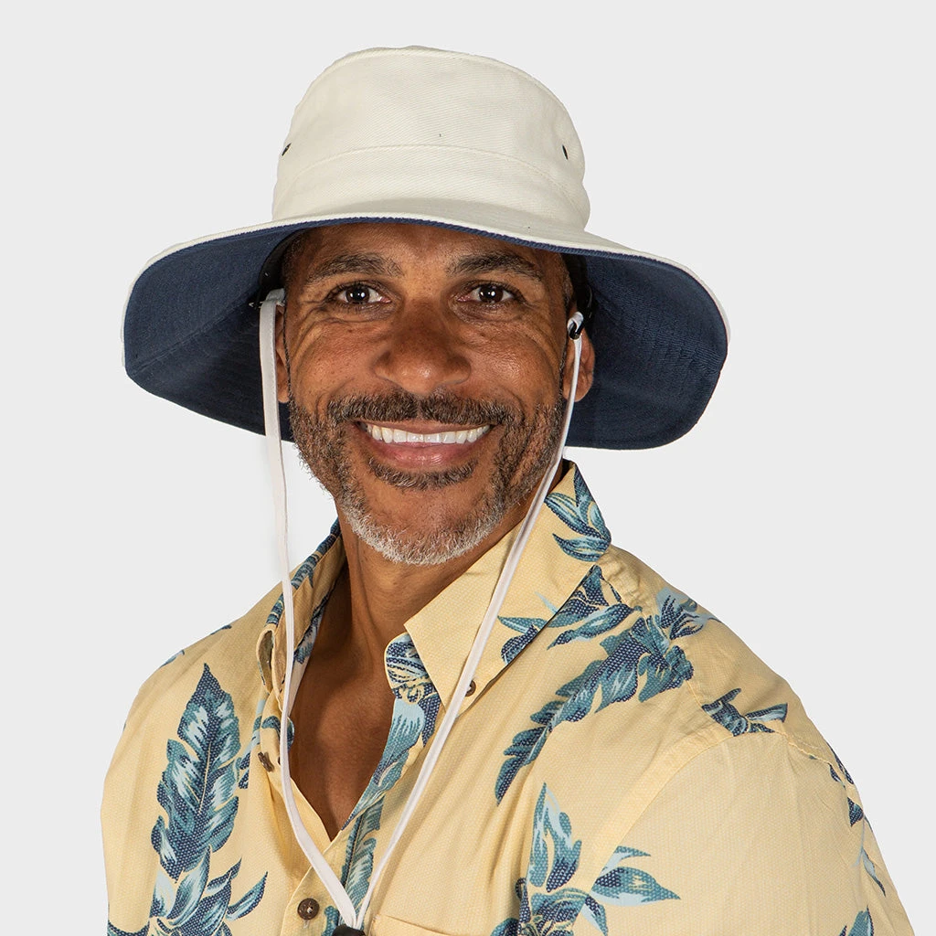 Popular with sports people and spectators alike, the men’s Alan Cricket cotton canvas hat is crushable and packable. Travel friendly and fully adjustable with chin toggle. Can be embroidered with your organisation logo. All Cancer Council hats are rated at the maximum UPF 50+ for excellent sun protection.Â