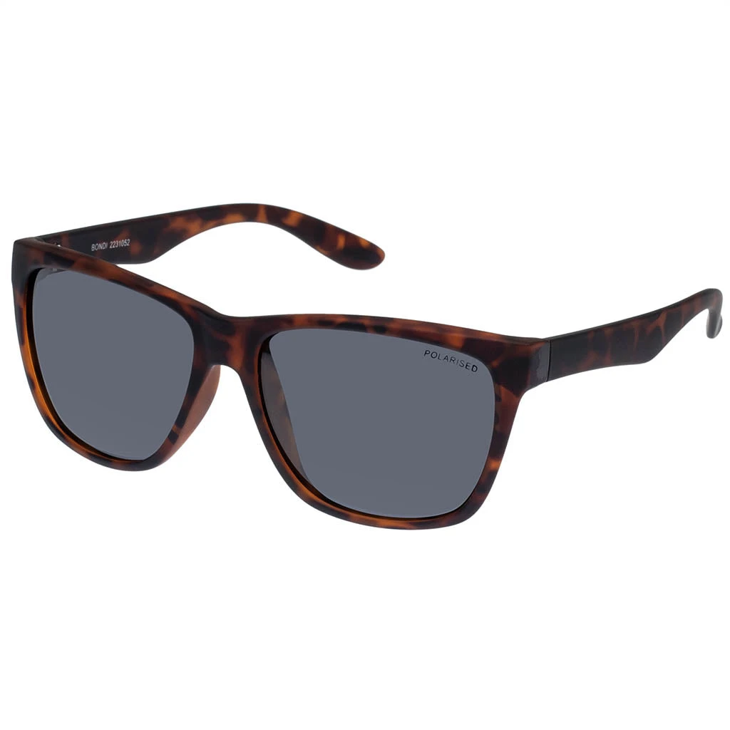 Bondi is a popular and classic unisex style. The modern rectangle frame is well suited to most face shapes and is easy to style with any outfit. Fitted with polarised lenses to eliminate unwanted reflective glare.Â