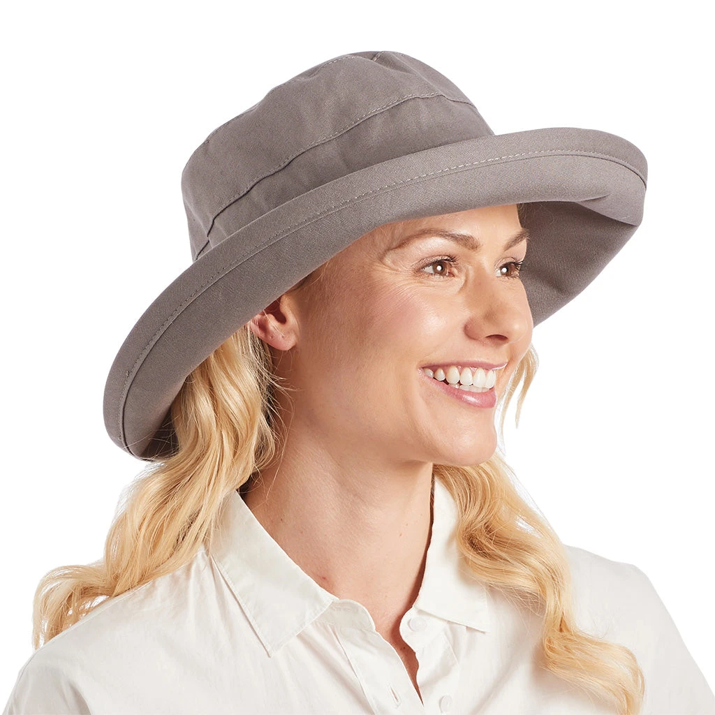 The women’s Essential Traveller Hat is the perfect sun hat for any active lifestyle. It provides UPF50+ protection and comes in a lightweight and breathable mocha fabric. It rolls up easily for convenient transport, and the wide brim, shapeable fit, and interior drawstring make it the ideal choice for customisable outdoor wear.