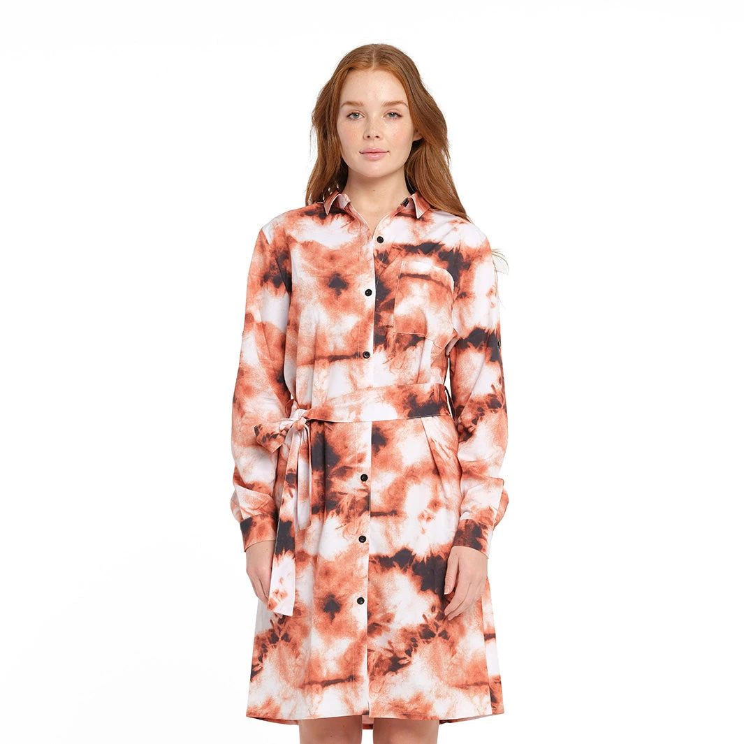 The Women’s Golden Tie Dye Printed Dress, a new addition to the Cancer Council collection, features adjustable arm lengths and a button up front with belt for a fitted or relaxed silhouette. This dress is ideal for sunny days spent by the beach or pool.